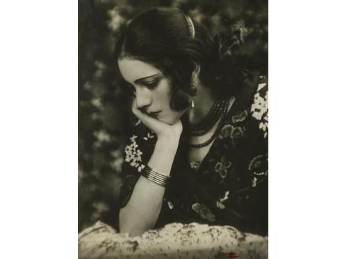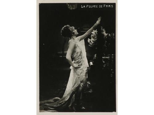 1962. FOTOGRAFÍA. (ACTRIZ). DOS FOTOGRAFÍAS, UN RETRATO DE RAQUEL MELLER Y OTRA DE SU MULTITUDINARIO ENTIERRO EN BARCELONA. El retrato en gelatina de plata, 21 x 16 cm, con sellos de caucho de prensa al dorso y algunas anotaciones. La imagen del entierro de la actriz, de 8 x 15 cm. Al dorso rastro haber estado adherida a alguna superficie, por lo que ha perdido parte del texto mecanografiado del pie de imprenta.