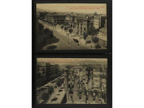 1909. POSTALES. LOTE DE 100 POSTALES, SERIE COMPLETA DE LOS SUCESOS DE LA LLAMADA SEMANA TRÁGICA DE BARCELONA. Presentadas en álbum. Todas A.T.V.