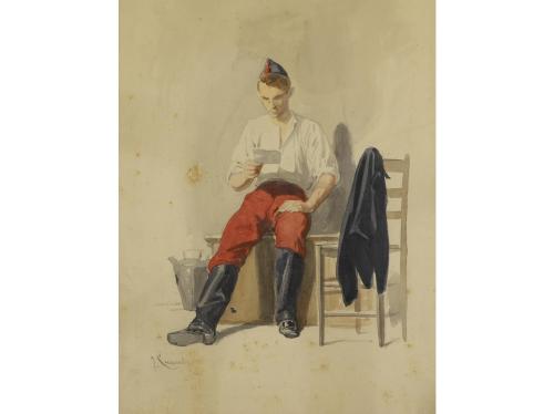 1890 ca. ORIGINAL ARTÍSTICO. LA CARTA. Acuarela y técnica mixta sobre papel de 35 x 25 cm. Algún punto de óxido.