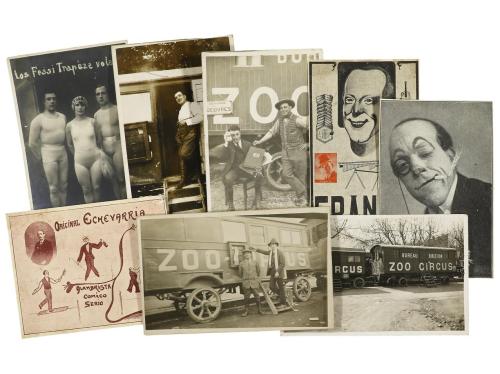 1915 ca. POSTALES. (CIRCO). LOTE DE 25 POSTALES DE CIRCO. La mayoría son postales fotográficas, incluye algún programa. Todas de ZOO CIRCUS, la caravana, los personajes caracterizados (enanos, payasos, trapecistas, etc.).