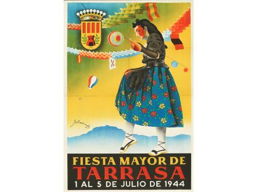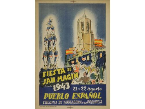 1943. CARTEL. (FIESTAS). FIESTA DE SAN MAGIN 1943. PUEBLO ESPAÑOL. 48 x 33 cm. Litografía. Entelado. A .