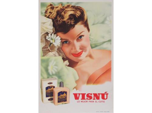 1961. CARTEL. (PUBLICIDAD). VISNÚ. LO MEJOR PARA EL CUTIS. Barcelona: Graf. Manén. 90 x 59 cm (35 x 23 in). Offset. Pequeño cerco de humedad en la esquina inferior derecha. A-.