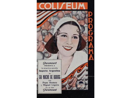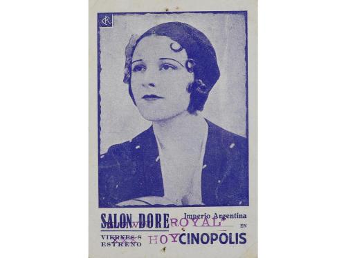 1930 ca. PROGRAMA DE MANO. CINÓPOLIS. TARJETA PUBLICITARIA. Offset. Dos puntos de aguja. Doblez en una esquina y leve óxido marginal. Sello húmedo.