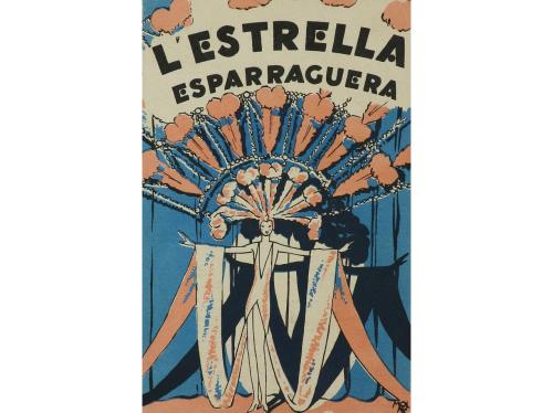1931. PROGRAMA DE MANO. LAS LUCES DE LA CIUDAD. L'ESTRELLA ESPARRAGUERA. Díptico con el pliegue vertical desplazado. Litográfico. Publicidad en catalán del cine de Esparraguera.