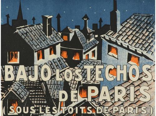 1932. PROGRAMA DE MANO. BAJO LOS TECHOS DE PARIS. Tarjeta litográfica. Publicidad al dorso en castellano y catalán. Puntas algo romas.