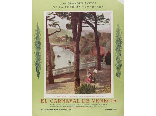 1928. PROGRAMA DE MANO. EL CARNAVAL DE VENECIA. Folleto de 6 h. offset. Portada a color, interior b/n. Rajitas periféricas y falta en una esquina. Ha perdido una de las grapas originales, conserva la otra oxidada.