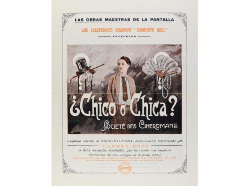 1930 ca. PROGRAMA DE MANO. ¿CHICO Ó CHICA?. Díptico grande offset. Doblez horizontal y vertical, rajitas periféricas.