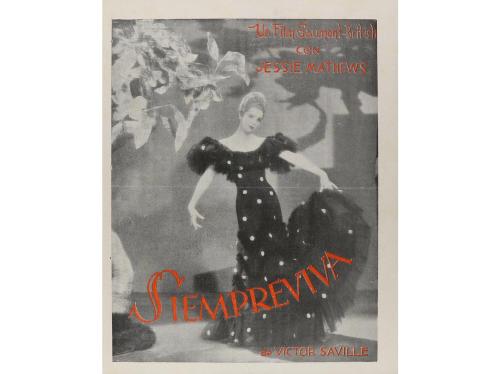 1930 ca. PROGRAMA DE MANO. SIEMPREVIVA. Díptico grande, offset. Doblez horizontal. Levísima sombra de óxido.