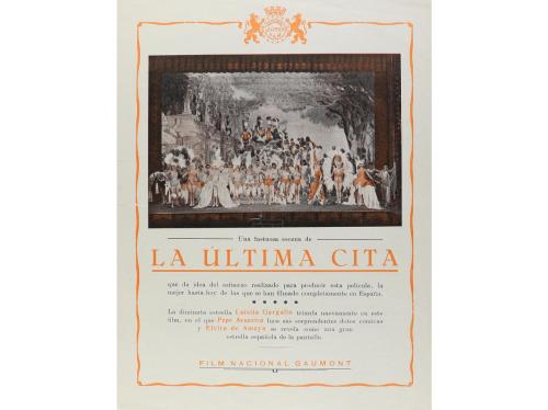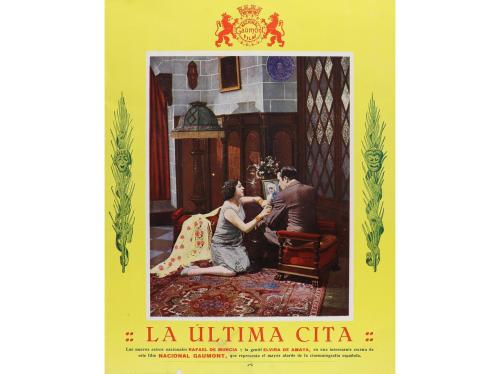 1930 ca. PROGRAMA DE MANO. LA ÚLTIMA CITA. Sencillo grande, en offset. Doblez horizontal con pequeña raja en un extremo.