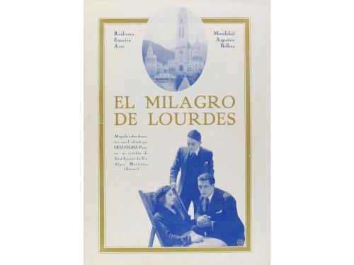 1930 ca. PROGRAMA DE MANO. EL MILAGRO DE LOURDES. Folleto de 4 h., offset. Cinta adhesiva en el lateral. Dobleces periféricos.