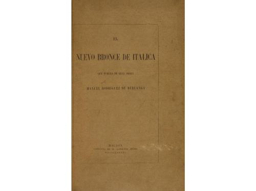 1757-1773. LIBRO. (NUMISMÁTICA). MEDALLAS DE LAS COLONIAS, MUNICIPIOS Y PUEBLOS ANTIGUOS DE ESPAÑA. COLECCION DE LAS QUE SE HALLAN EN DIVERSOS AUTORES... Madrid: Oficina de Antonio Marin, 1757-1773. 3 vol. en 4º menor. I: 8 h. + 408 p. y XXII lám. II: 2 h. + de 409 p. a 681 p. + 1 h. y de lám. XXIV a LVIII además de una lám. con la genealogía de los césares. III: Imp. Antonio de Sancha, 1773. 6 h. + 292 p. + 8 lám. grabadas y 2 h. Tres vol. con cabeceras y culs-de-lampe calcográficos y capitales xilográficas. Enc. los tres en plena piel de época, doble tejuelo, nervios, lomera cuajada, cortes pintados. Palau 92710, dice que es imprescindible añadir la tercera parte de Sancha, presente en este lote.