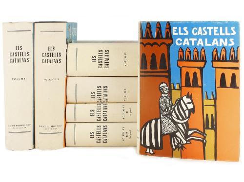 1967-1979. LIBRO. (ARTE-CATALUNYA). ELS CASTELLS CATALANS. Barcelona: Ed. Dalmau, 1967-1979. 7 vol. en 4º menor. Siete vol. de unas 1100 p. c. u. Profus. ilustr. con fotografías y figuras en el texto y fuera del texto. Todos enc. en guáflex original, plano anterior estampado, y con las sobrecubiertas originales, algunas con leve rasgadura (2º y 3º vol) .