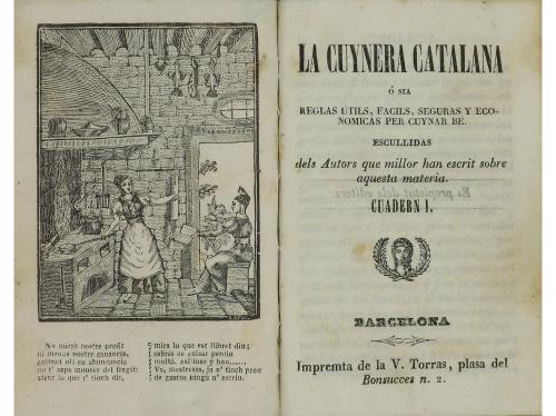 1890 ca. LIBRO. (CUINA). LA CUYNERA CATALANA Ó SIA REGLAS ÚTILS, FACILS, SEGURAS Y ECONOMICAS PER CUYNAR BÉ. Barcelona: Imp. V. Torras, s.a. 8º menor. 380 p. + 2 h. Planos de cartoné, lomera de piel, rozado.