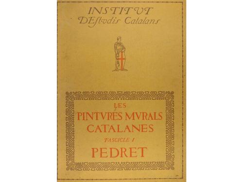 1907 ca. LIBRO. (ARTE). LES PINTURES MURALS CATALANES. Barcelona: Institut d'Estudis catalans. Folio mayor. Presentados juntos en un vol. IV fascículos que corresponden: PEDRET (I), S. MARTI DE FENOLLAR, S. MIQUEL DE LA SEU (II), S. CLIMENT DE TAHULL, STA. MARIA DE TAHULL, STA. MARIA DE TAHULL, STA. MARIA D'ANEU, S. PERE DEL BURGAL (III), GINESTARRE DE CARDOS, ESTERRI DE CARDOS, STA. EULALIA DÈSTAHON, STA. MARIA DE MUR, S. PERE D'AGER. 74 p. + XXXIII lám. a color. Cada fascículo con cubiertas propias. Presentados juntos en un vol. enc. en media piel, por BRUGALLA, nervios, corte superior dorado, conserva las cubiertas originales.
