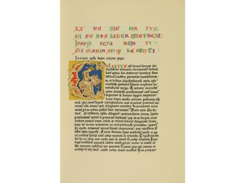 1980. LIBRO. (FACSÍMIL). APOCALIPSIS FIGURADO DE LOS DUQUES DE SABOYA. Madrid: Edilan, 1980. Folio mayor. Edición facsímil del códice escurialense Vit. I del Apocalipsis figurado de los duques de Saboya. Profus. ilustr., abundantes dorados. Enc. en plena piel, planos decorados dorados, cortes pintados. Cantos levemente rozados y lomera ligeramente descolorida. Presentado en una petaca con el libro de estudio. Edición de 1.000 ejemplares numerados, con acta notarial.