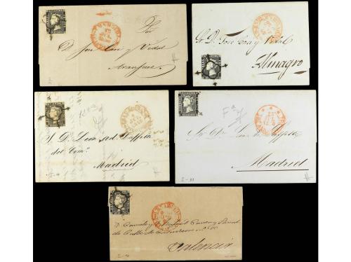 ✉ ESPAÑA. Ed. 1A (10). 1850. 6 cuartos negro. Conjunto de 10 frontales.