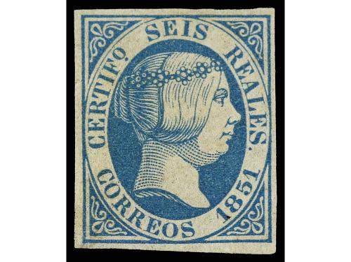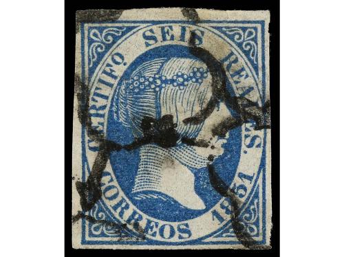 (*) ESPAÑA. Ed. 4. 6 reales azul. MAGNÍFICO EJEMPLAR. Cert. GRAUS. Cat. 4.400€.