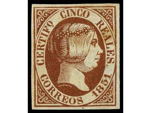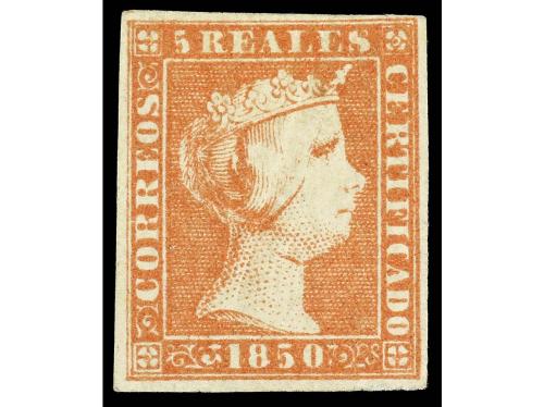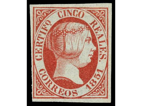 (*) ESPAÑA. Ed. 9. 5 reales rojo. Color intenso y márgenes completos. Muy buen ejemplar. Cert. GRAUS.