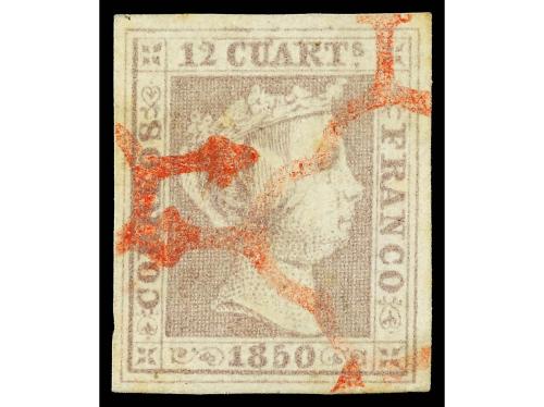 ° ESPAÑA. Ed. 7. 12 cuartos lila. Muy bonito ejemplar. Cert. GRAUS. Cat. 250€.