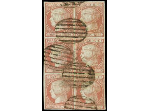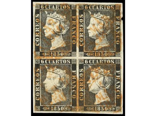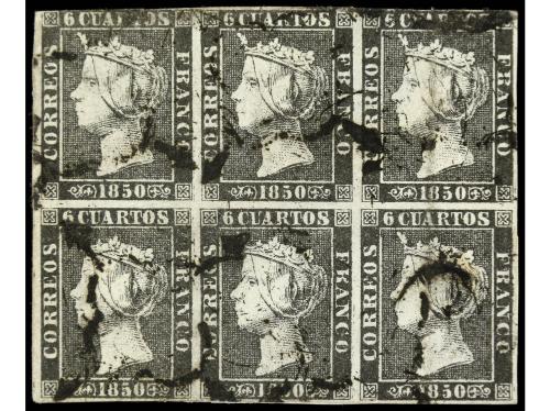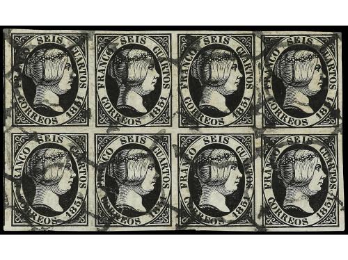 ° ESPAÑA. Ed. 6 (8). 6 cuartos negros. Bloque de ocho. Leves pliegues sin importancia. PRECIOSO. Cert. COMEX y EXFIMA.
