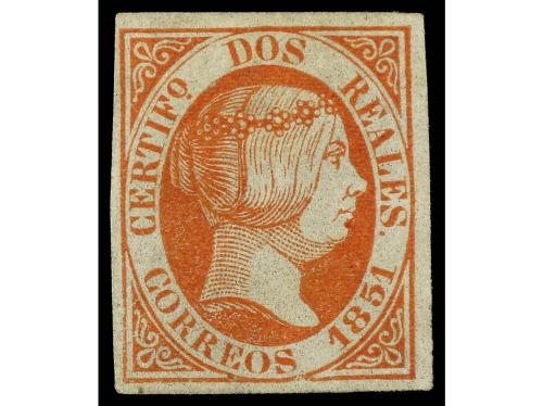* ESPAÑA. Ed. 8. 2 reales rojo naranja. Color intenso y grandes márgenes. PIEZA DE LUJO. Cert. GRAUS (alta calidad) y COMEX (1971).