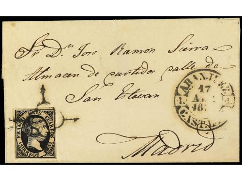 ✉ ESPAÑA. Ed. 6. 1851. ARANJUEZ a MADRID. 6 cuartos negro, mat. araña y fechador ARANJUEZ/CAST. LA N. en negro. MUY RARA.