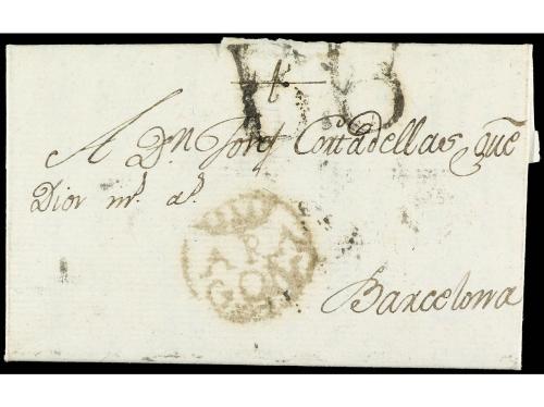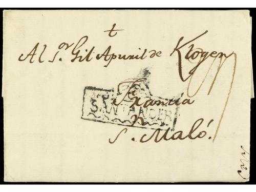 ✉ ESPAÑA. 1789. PREFILATELIA. SANTANDER a FRANCIA. Marca C. / SANTANDER en negro. (Pe 5). PRECIOSA.