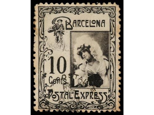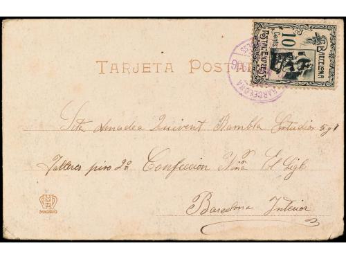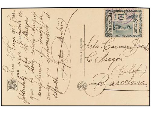 ✉ ESPAÑA. Ed. PEB 4. 1906. BARCELONA correo interior con sello de 10 cts. verde del Servicio Privado de Mensajerías BARCELONA / POSTAL EXPRESS. Muy bonito y RARO.