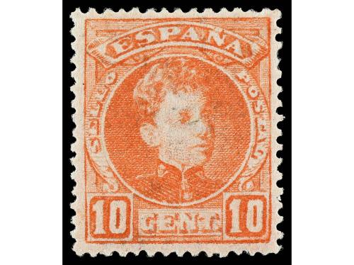 * ESPAÑA. Ed. 228. 10 pesetas bermellón. Grandes márgenes y centrado perfecto. RARÍSIMO en esta calidad. Imperceptible señal de fijasellos. PIEZA DE LUJO. Cert. COMEX.