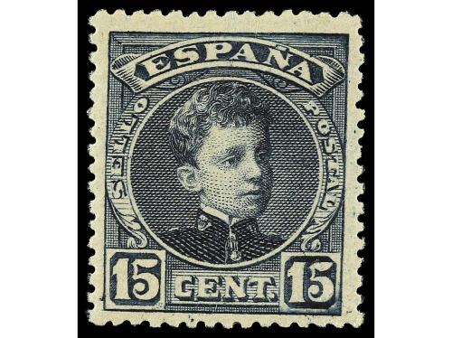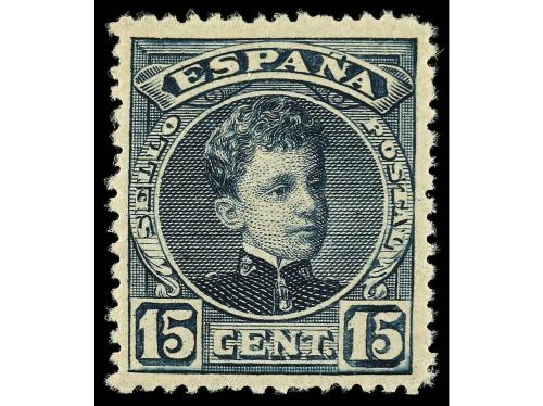 ** ESPAÑA. Ed. 244. 15 cts. azul negro, 000.000. Excelente centraje. MAGNÍFICO EJEMPLAR.
