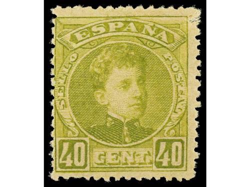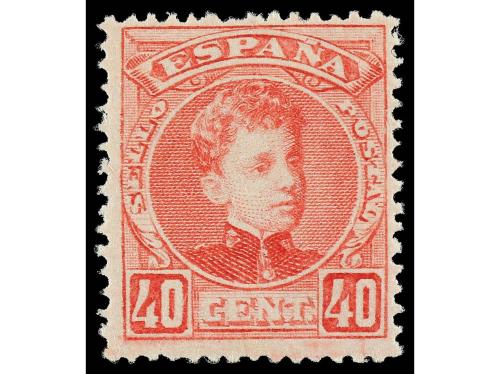 ** ESPAÑA. Ed. 251. 40 cts. rosa. Bien centrado para esta emisión, sello muy raro sin fijasellos. Muy bonito ejemplar. Cert. COMEX.