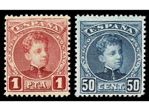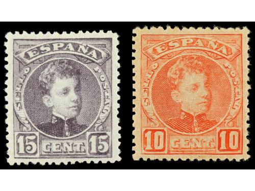 * ESPAÑA. Ed. 243, 245. 10 c. rojo y 15 c. lila oscuro. Centrados perfectos. LUJO.