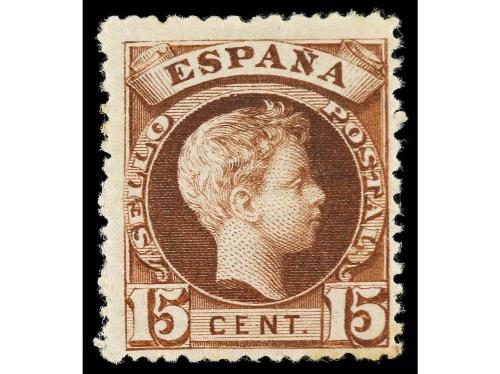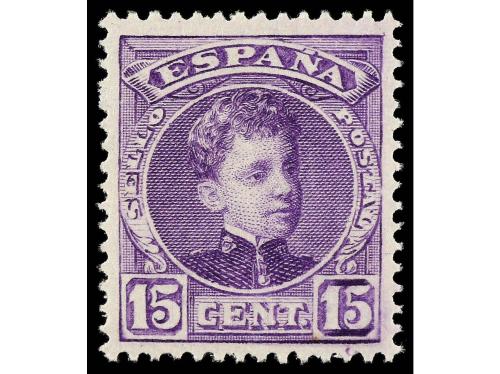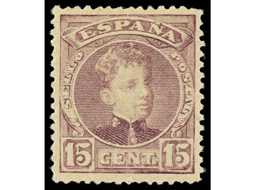 ** ESPAÑA. Ed. 245. 15 cts. castaño lila. Centrado de LUJO. Raro sin fijasellos.