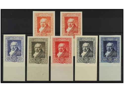 (*) ESPAÑA. Ed. 508. ENSAYOS DE COLOR. 25 cts. siete sellos sin dentar en colores naranja, rojo, carmín, azul, ultramar, castaño y negro. PRECIOSOS.