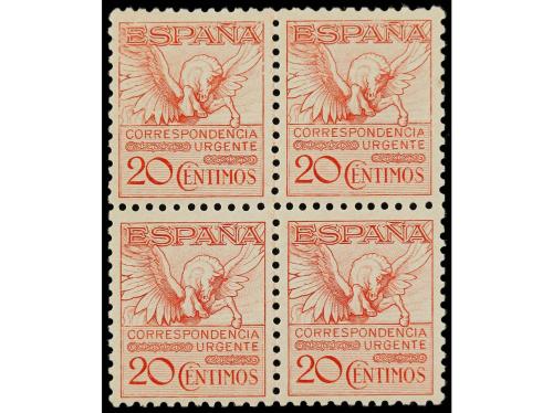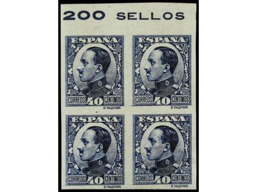 ** ESPAÑA. Ed. 497s (4). 40 cts. azul tipo I. Bloque de cuatro SIN DENTAR. LUJO. Cat. 572€.