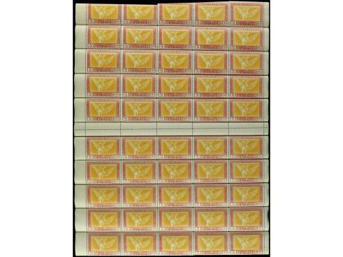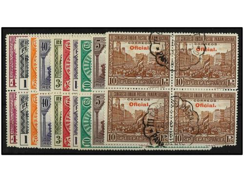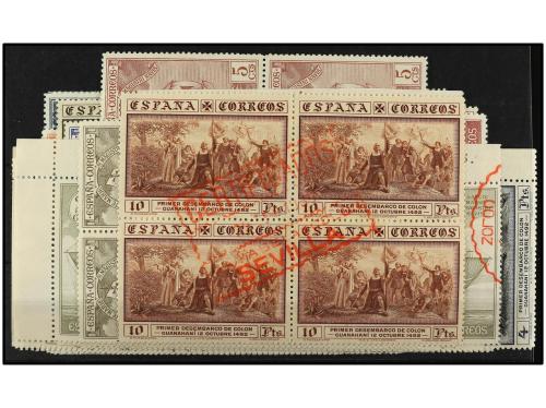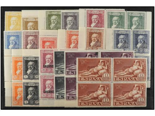 * ESPAÑA. Ed. 636/49s(4). SERIE COMPLETA. 14 valores SIN DENTAR en BLOQUES DE CUATRO. 40 cts. adelgazado entre los sellos y 1 pta. sin goma. MUY RARA. Cat. 22.000€.