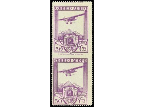 * ESPAÑA. Ed. 486spv. 50 cts. violeta. Pareja vertical SIN DENTAR EN MEDIO. Presenta además la variedad 486r y ra. RARA variedad combinada. Cat. +450€.