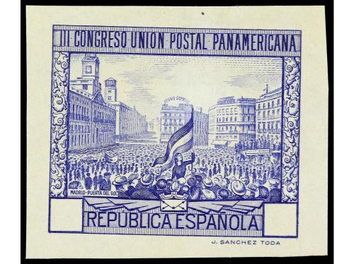 ESPAÑA. 1931. C.U.P.P. PRUEBA DE PUNZÓN. Sin valor, azul. Gálvez 2866. Leve adelgazamiento sin importancia. RARÍSIMA.