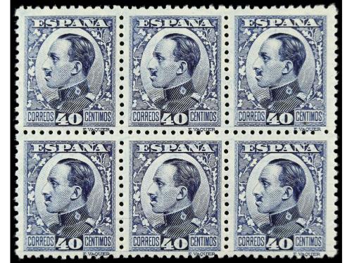 ** ESPAÑA. Ed. 497A (6). 40 cts. azul tipo II. Bloque de seis. Centraje perfecto. LUJO. Cat. 426€.