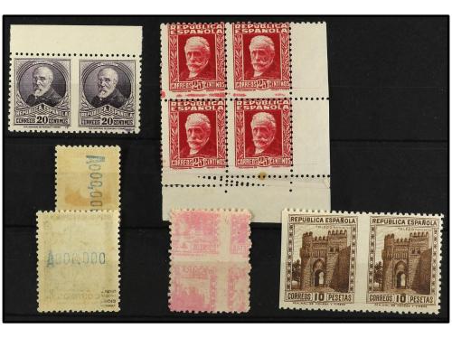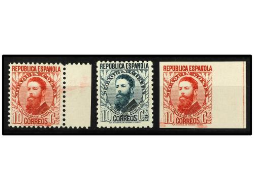 ** ESPAÑA. Ed. 664cc, cca y 664cbs. 10 cts. rosa, 10 cts. verde azulado (este con fijasellos) y 10 cts. rosa sin goma. COLORES CAMBIADOS. Cat. +305€.