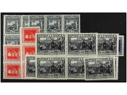 ** ESPAÑA. Ed. 662/75 sin 671. SERIE COMPLETA a falta del 50 cts. 12 valores en bloques de cuatro. Muy bonita. Cat. +776€.