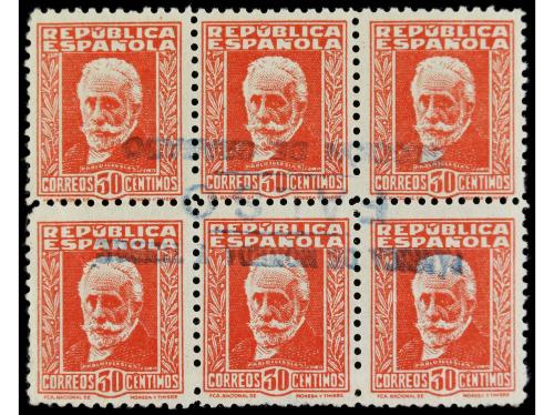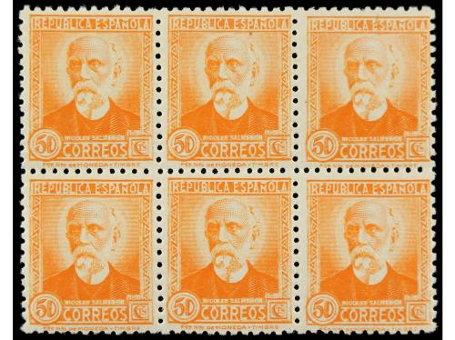 ** ESPAÑA. Ed. 671 (6). 50 cts. negro. Bloque de seis, bien centrado, valor clave de la serie. Cat. 540€.