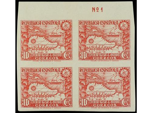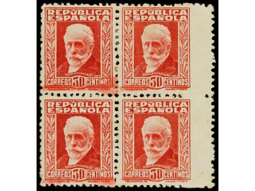 * ESPAÑA. Ed. 694s. 30 cts. rojo. Bloque de cuatro SIN DENTAR. Cat. 260€.