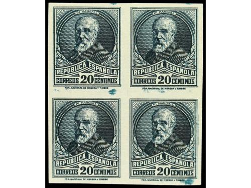 ** ESPAÑA. Ed. 666ccas (4). 20 cts. verde oscuro. Bloque de cuatro sin dentar. COLOR CAMBIADO. Cat. +364€.