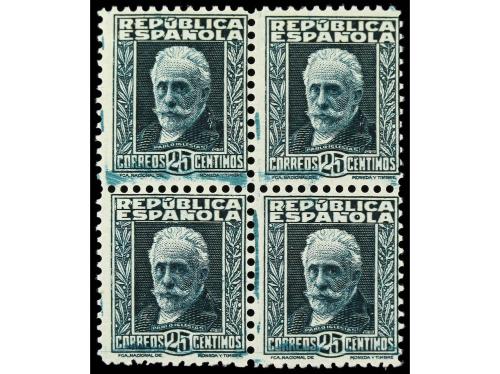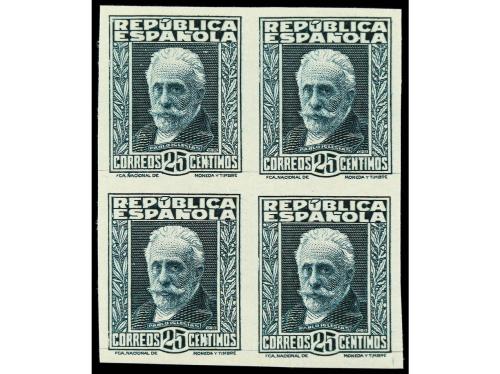 ** ESPAÑA. Ed. 667ccs (4). 25 cts. verde oscuro en bloque de cuatro sin dentar. COLOR CAMBIADO. Cat. +320€.
