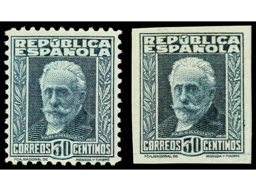 ** ESPAÑA. Ed. 666cca y (*) 666ccs. 20 cts. verde oscuro, dentado y 20 cts. lila rosáceo, sin dentar. COLORES CAMBIADOS. Cat. +248€.