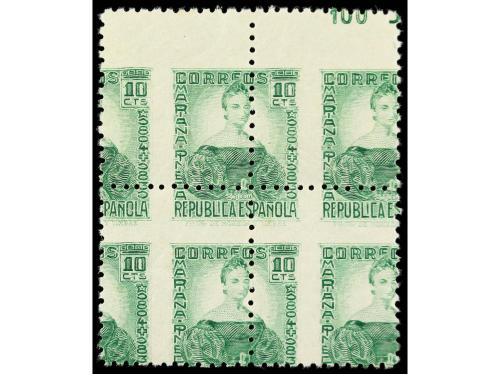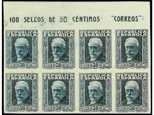 ** ESPAÑA. Ed. 669ccs (8). 30 cts. verde azulado en bloque de cuatro sin dentar. COLOR CAMBIADO. Cat. +800€.