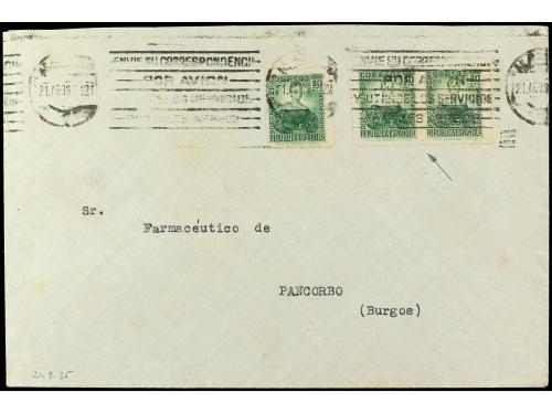 ✉ ESPAÑA. Ed. 682s. 1931. BARCELONA a BURGOS. 10 cts. verde y 10 cts. verde en pareja SIN DENTAR. Rarísimo en carta verdaderamente circulada, al dorso llegada.