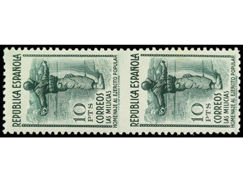 ** ESPAÑA. Ed. 800spv. 10 pts. verde. Pareja vertical SIN DENTAR EN MEDIO.