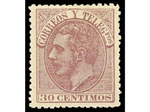 * ESPAÑA. Ed. 211. 30 céntimos lila. Color intenso y centrado perfecto. Raro en esta calidad. Cert. COMEX. Cat. 570€.